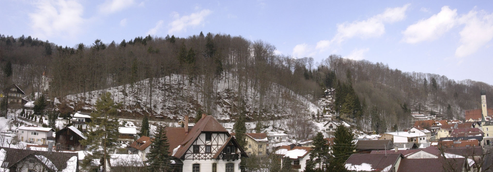 Unsere Berggasse findet man - wie schon erwähnt - in Wolfratshausen, genauer gesagt im Süden des Marktes, im Schatten (meistens, leider) des wunderschönen Bergwalds. Von dem gibt es hier ein schönes Panoramafoto, auf dem Kenner auch die meisten Häuser der Berggasse identifizieren können (ein Teil ist leider von anderen Häusern verdeckt):